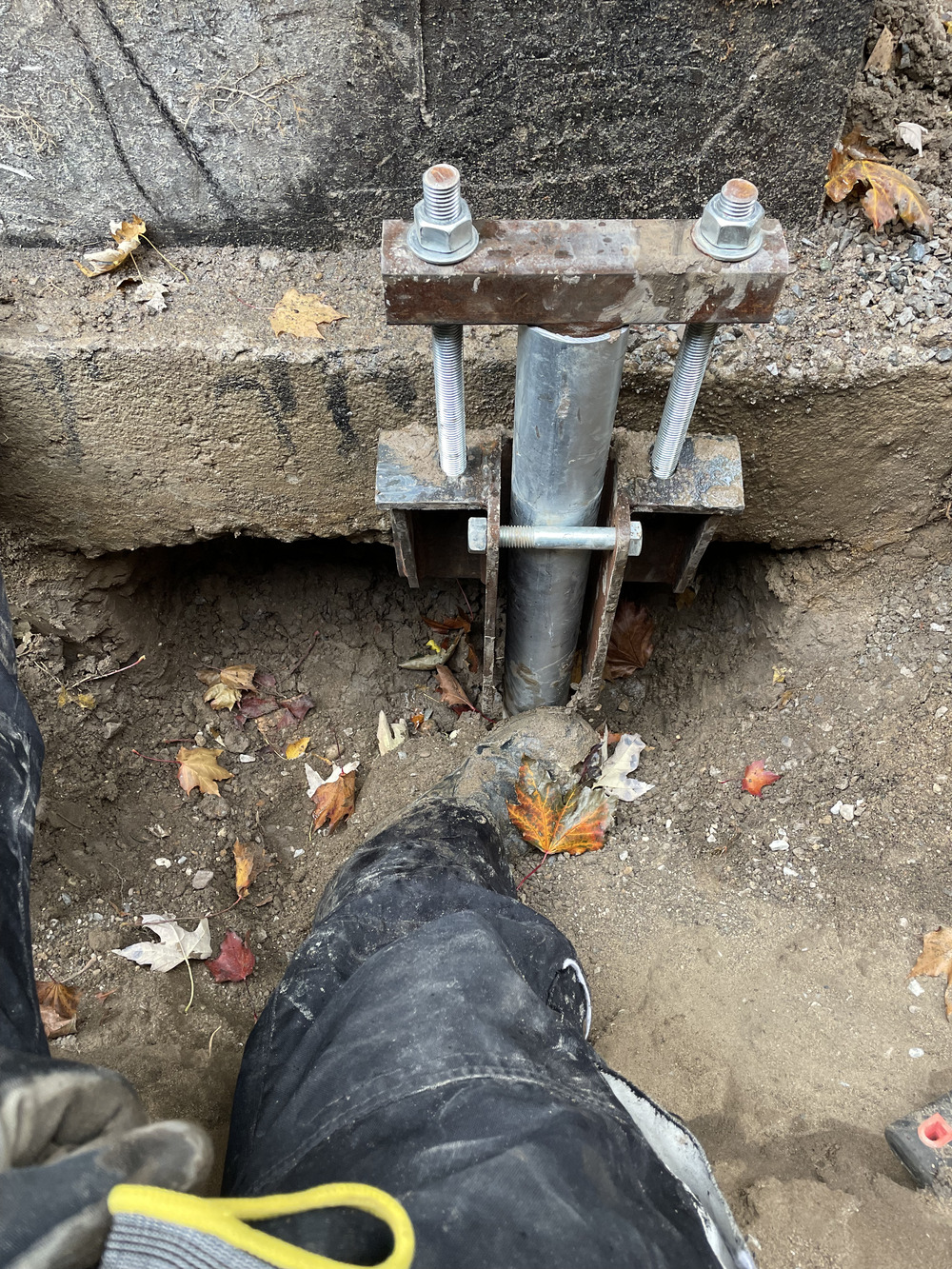 A heavy steel foundation bracing is installed to the structure's footing after the piers are in place. This connects the helical piles and allows the building weight to be transferred permanently. Once this is complete, you will be able to carefully raise, level, or stabilize the foundation based on the demands of the job.